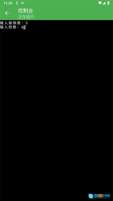 3、接下来在控制台输入测试数据,此时要分别输入被除数与除数。