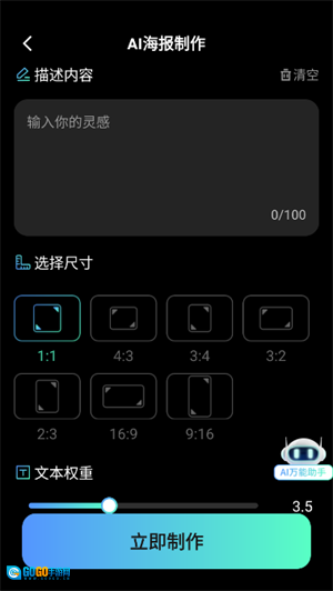 4、输入灵感,挑选心仪的绘画模型、尺寸等,点击“立即制作”就可以了。