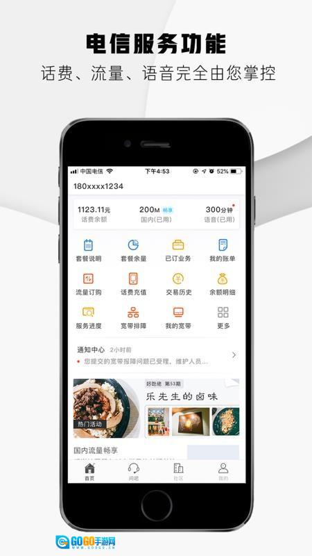 4、电信服务功能:话费、流量以及语音,都完全由您掌控。