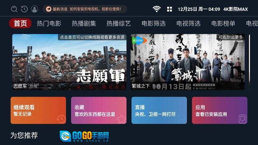 4K影院MAX,一款超好用的免费追剧神器。它体积轻盈,却蕴藏海量影视资源,涵盖国内外各类热门影视,无论是玄幻、历史、爱情,还是悬疑、恐怖等不同类型,统统都有,全方位满足不同用户的需求。不仅如此,这款软件还具备强大的搜索引擎,搭配个性化推荐系统,使用体验超棒。此外,离线模式、在线投屏以及高清蓝光画质等功能一应俱全。喜爱追剧的小伙伴们,别再犹豫,赶紧用起来!