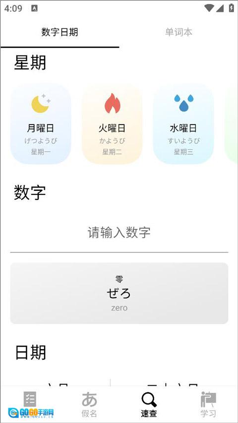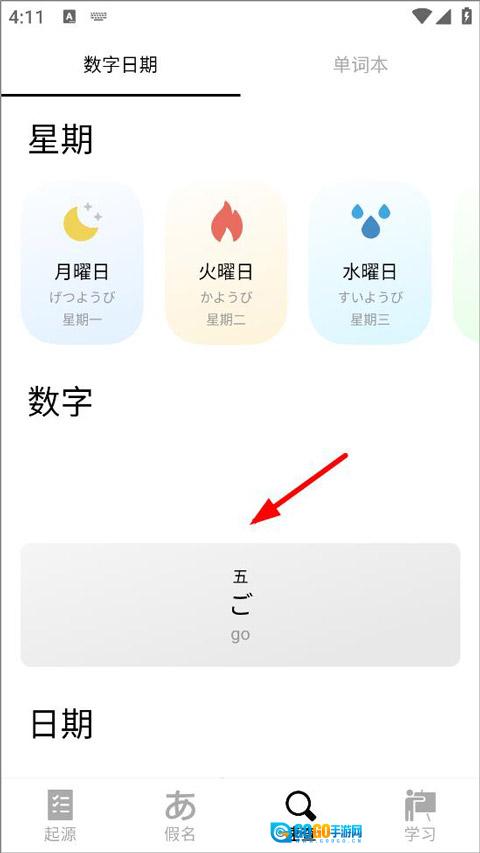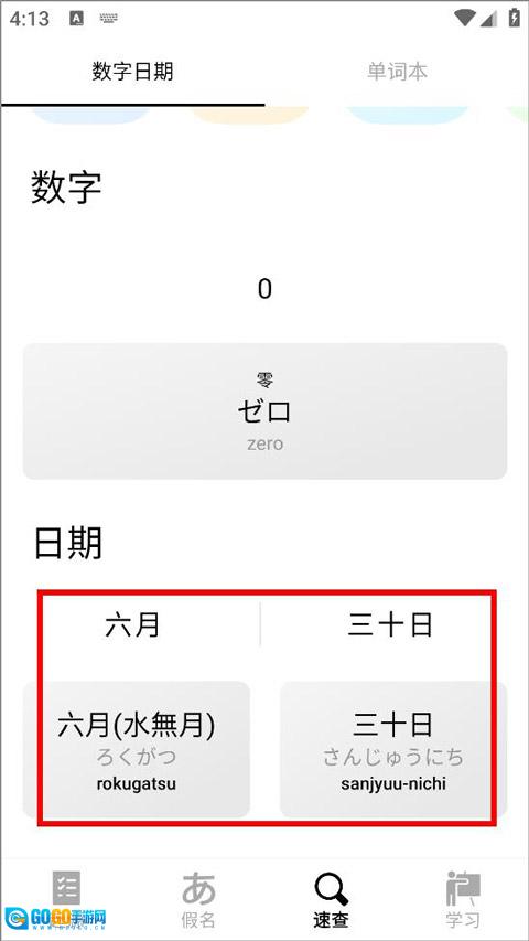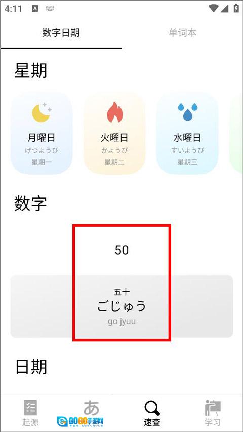 3、在输入框中输入数字后,已翻译的日语单词便会展示在输入框下方。
