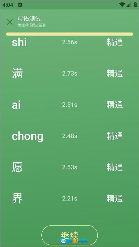 2、第一步开展母语测试,完成测试后点击继续。