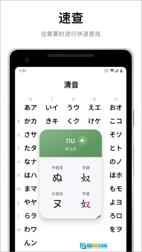 当你有需求时,速查表能让你迅速找到想要了解的假名。