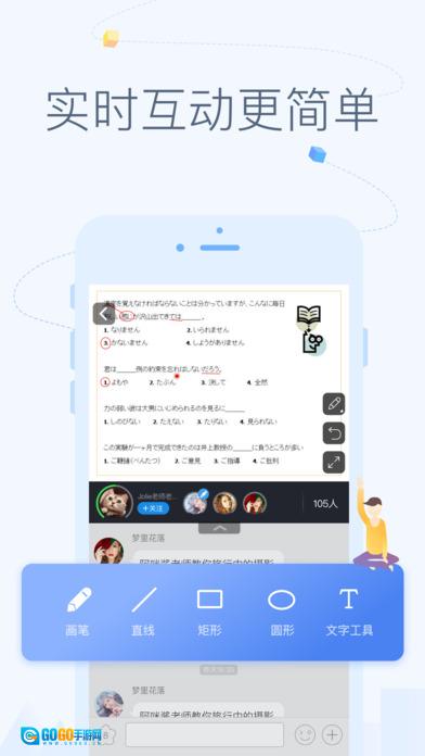 1历经18年在教育行业的专注钻研与精心打磨,在线学习的体验丝毫不逊色于传统教室。播放讲义、双向视频、举手发言、课后回放、离线缓存、倍速播放等功能一应俱全,全方位助力你实实在在地学完知识、学好知识、学透知识。赶快选择CCtalk,即刻开启你的学习之旅吧。