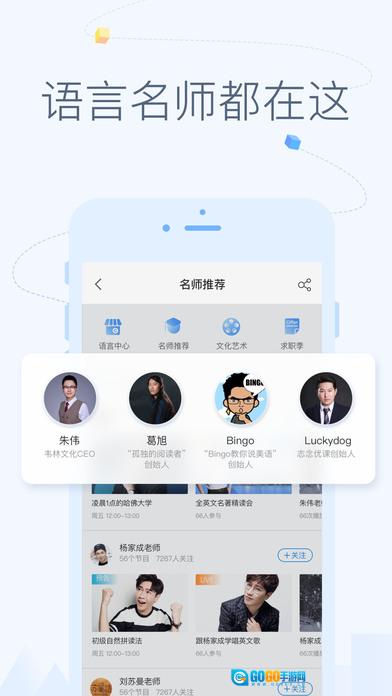 大咖朱伟、葛旭、秋叶课堂,考研神嘴张雪峰,明星私教Bingo,网红名师杨家成、阿蟹阿虾,《最强大脑》申一帆、刘会凤、王鹰豪,全国语文名师史金霞、叶开,与名师面对面,解锁学习技能。