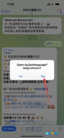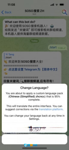 3、于聊天界面里,点击蓝色地址“点这里设置Telegram为简体中文” 。