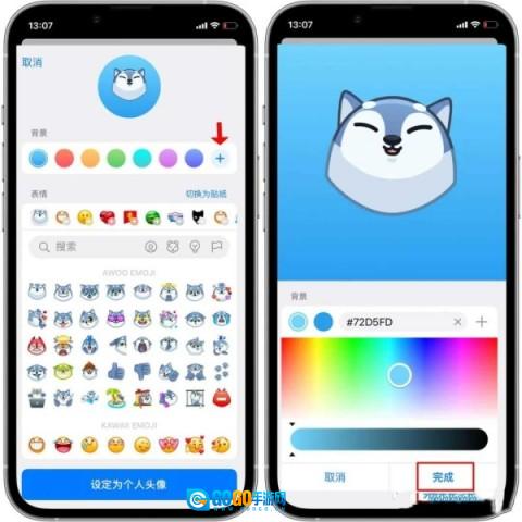 2. 轻点【+】号,就能挑选更多颜色。在选好背景色之后,一定记得点击【完成】进行确认。