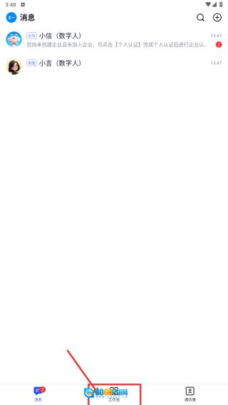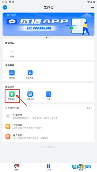 1. 开启链信应用程序,轻点底部的工作台选项,随即进入工作台页面。