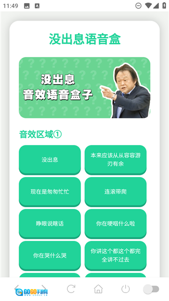 没出息语音盒是一款由网友自行制作的恶搞语音盒工具,持续更新大量魔性音效。它还配备丰富的变声教程,用户可依据自身实际需求选择使用。用户仅需轻点想要播放的音效图标,就能即刻激活对应的声音,适用场景十分广泛。
