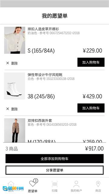 你能够查看当下流行的服装与配饰有哪些,并创建一份愿望清单,用以收藏你最喜爱的物品。你还能通过条形码或扫码器,在其中添加男装和女装商品。