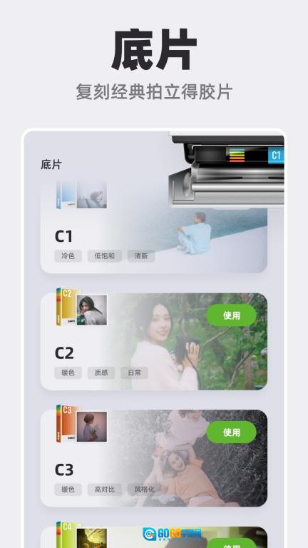 3、能够切换使用不同底片,每种底片都配有色彩介绍,以便了解底片的成片效果。