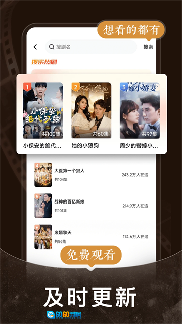 1. 提供免费短剧视频播放服务,用户可随时打开软件观看短剧视频。