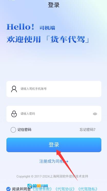 3、注册完成后,系统会自动跳转至登录界面,在此界面输入已注册的手机号和密码,就能成功登录代驾平台。