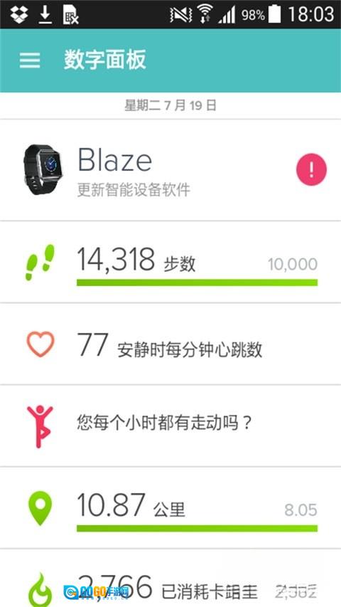 6、不但可以记录锻炼情况,而且能够追踪一整天的活动。