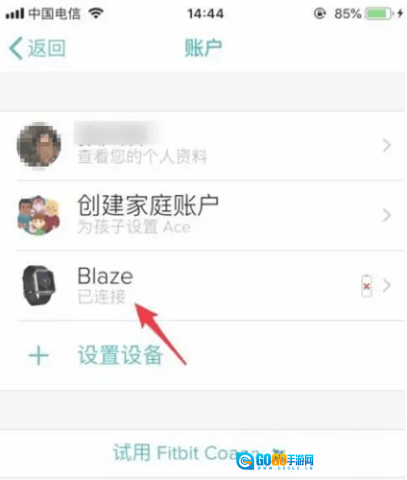 8、完成设置后,返回账户界面,此时你便可以看到已连接的Fitbit设备。