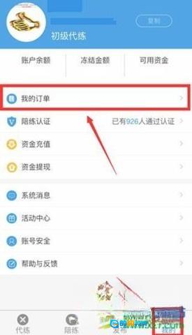 6、进入“我的”页面,点击“我的订单”,即可随时查看全部代练任务。