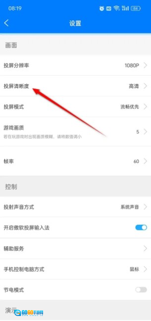 轻点“投屏清晰度”图标。
