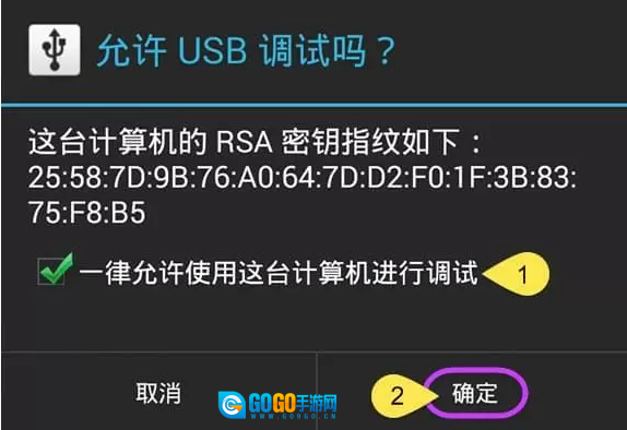 2、通过USB数据线把安卓手机和电脑相连。要是出现询问是否允许调试模式的窗口,选择“一律允许使用这台计算机进行调试”,接着点击“确定”。稍等几秒,安装便会成功。但部分品牌的手机,还需手动进行安装。