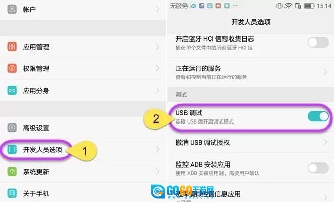 1. 在安卓手机上打开USB调试模式。