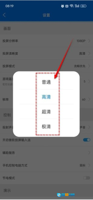 只需点选,就能将投屏清晰度更改为“普通”“高清”“超清”或者“极清”。