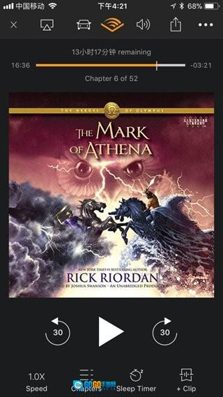 3、翻开其中任意一本书,书中会标记出你上次阅读停止的位置。在菜单中,你不仅能够调节播放速度(提供0.75x、1x、1.25x、1.5x、2x、2.5x以及3x倍速选项,对学习英语的人而言极为便利),还能设置睡眠时钟,便于在睡前听书。