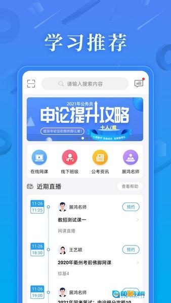 涵盖公考等多种类型考试,覆盖行测、申论、面试等各大知识考点,每道题目均配有详细解析,并针对各类考点开设直播课程。