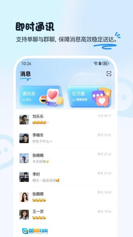 让用户与好友能随时随地进行便捷高效的沟通交流。