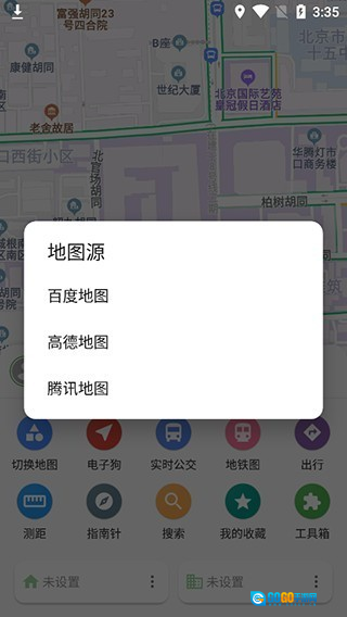 4、软件具备百度地图、高德地图、腾讯地图这四大数据源。返回至主界面后,点击即可切换地图。