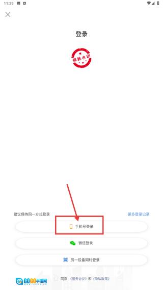 4、于登录页面,点击“手机号码登录”选项,执行手机号码登录操作。