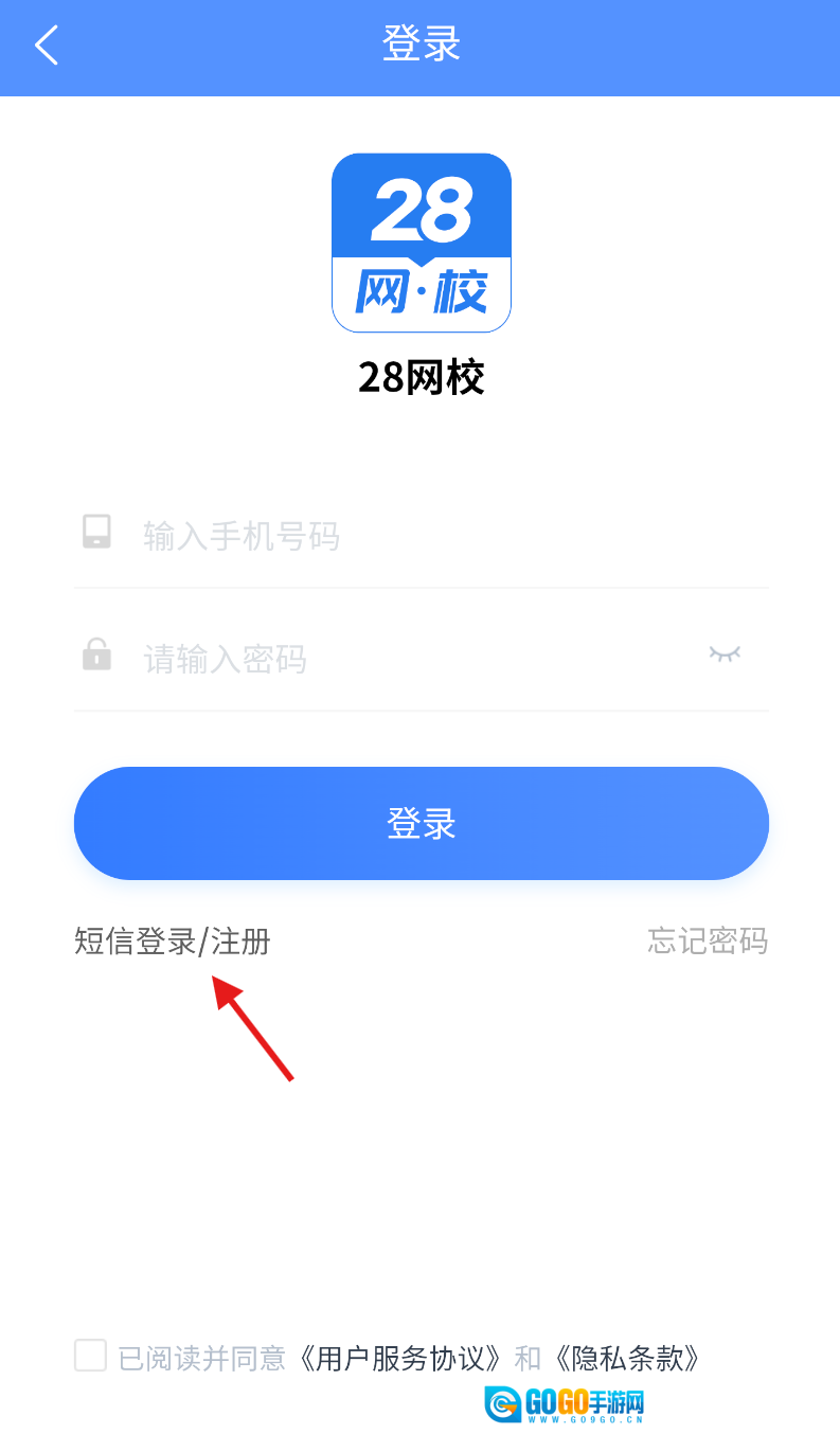 3、在登录页面的下方,找到“短信登录/注册”按钮,轻点该按钮即可切换至注册入口。