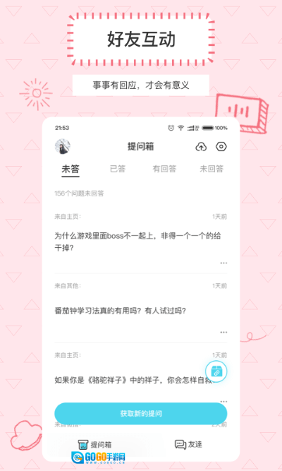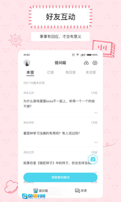 1、和好友、闺蜜、同学一同在Askbox提问箱玩耍,向好友提出那些不好意思当面问出口的问题。