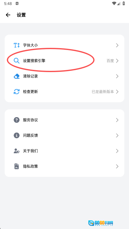 3、能够看到存在一个设置搜索引擎,在此处能够进行切换。