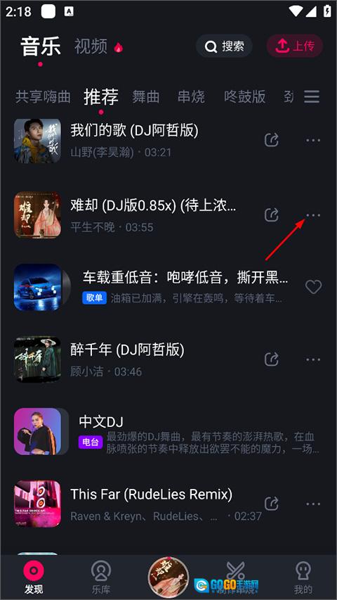 1. 用户启动酷狗DJ手机版,进入发现页面。在此页面,用户能够知悉排行榜、DJ音乐人、推荐歌曲等信息,接着点击列表里所需的歌曲。