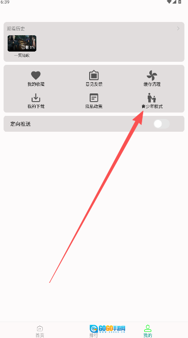1、在页面中点击“我的”,于页面上方找寻青少年模式。