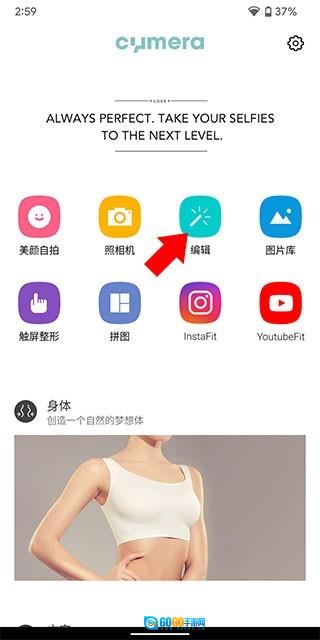 1、接着打开Cymera特效相机,进入下方主界面后点击编辑按钮。