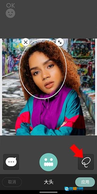 4、随后,相机会自动识别并捕捉相片中的面部区域。要是未能成功捕捉,只需点击右下角的磁力套索工具进行选取即可。