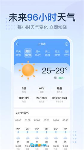 2. 天气预报精确至每小时,即便临时决定出门,也能及时知晓天气状况。