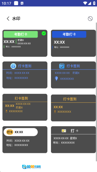 2、轻点水印,就能从多种打卡水印中挑选并使用,之后执行开启定位的操作。