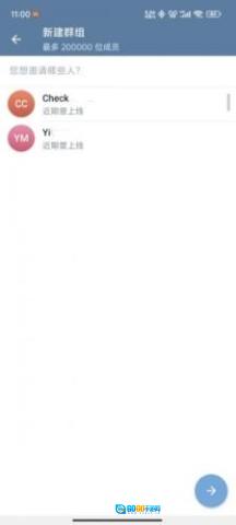 2、在创建新群组时,至少要邀请一位好友加入。值得一提的是,一个讨论群组的容纳上限高达20万人,对于大规模的讨论而言,是极为合适的。