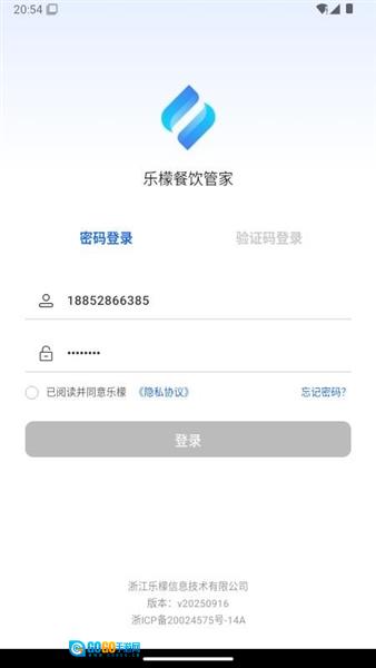1只要处于在线状态且打开乐檬餐饮管家,即可选择通过密码或者验证码进行登录。