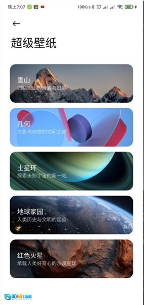 4、针对MIUI稳定版或开发版机型,第一步获取超级壁纸安装包,第二步安装MIUI壁纸基础运行程序,第三步在【设置】里找到【超级壁纸】选项,进而选择雪山壁纸进行应用。