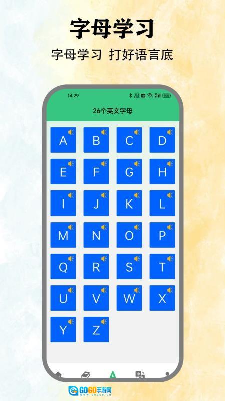 涵盖了26个英文字母,以便于用户学习英语字母,扎实自身的语言基础。