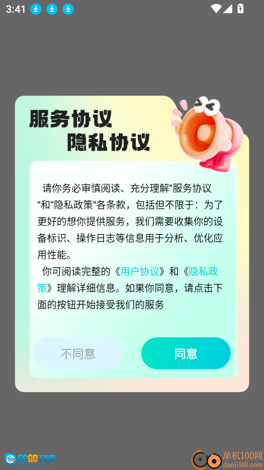 1、第一步,打开应用,点击“同意”按钮,进入应用。