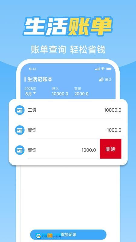 不仅如此,该应用还为用户准备了日常生活账单功能。通过生活记账本,用户可以方便地记录收支明细,随时轻松查询账单,便捷实现生活收支记账。
