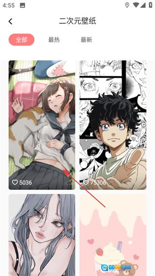 2、于二次元壁纸界面,挑选心仪的壁纸,进而进入该壁纸的详情界面。
