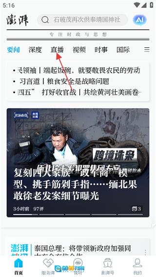 1. 打开澎湃新闻首页,挑选想要使用的功能,比如直播,然后点击进入相应页面。