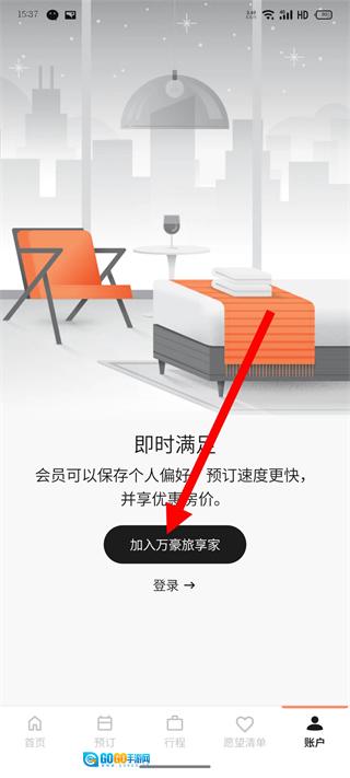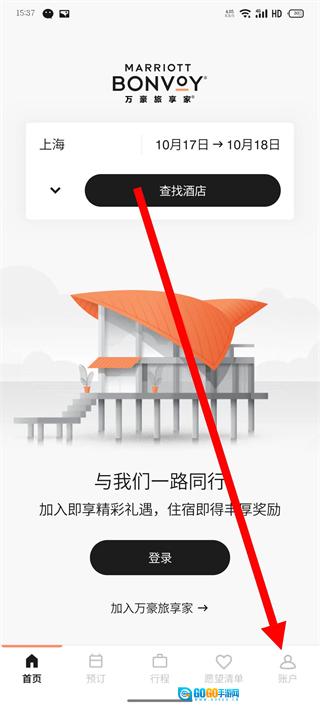 2. 来到账户页面,点击“加入万豪旅享家”按钮。