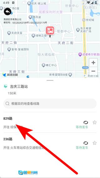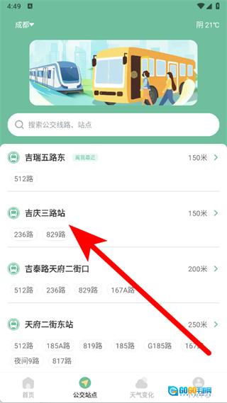 2、于公交站点展示页面,罗列出周边多个公交站点,从中挑选你打算查询的目标站点。