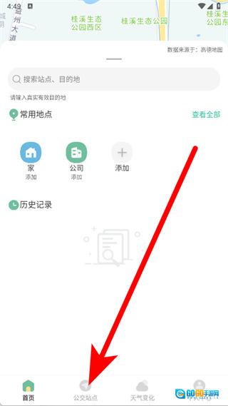 1. 开启掌上出行公交,进入主界面,随后点击底部导航栏中的公交站点选项。