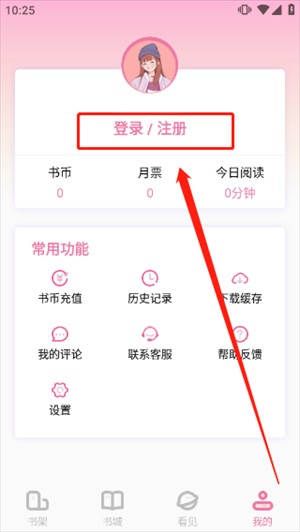 1、进入海棠小说阅读器软件主页中的“我的”点击头像即可注册登录;